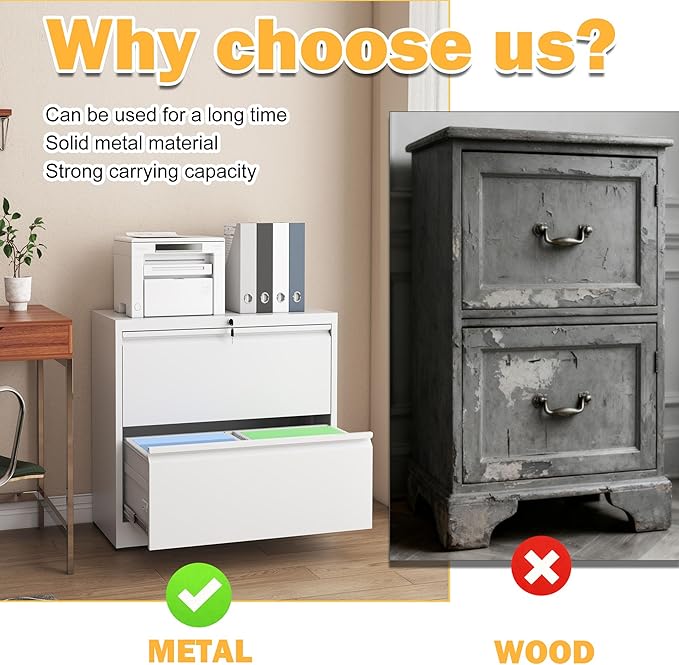- 【Premium Steel Material】The 2 drawer lateral file cabinet constructed from sturdy cold-rolled steel and with a powder coating process. This filing cabinet offers perfect strength and durability. It reliably protects your important files from damage and is built to withstand daily use for several years to come.