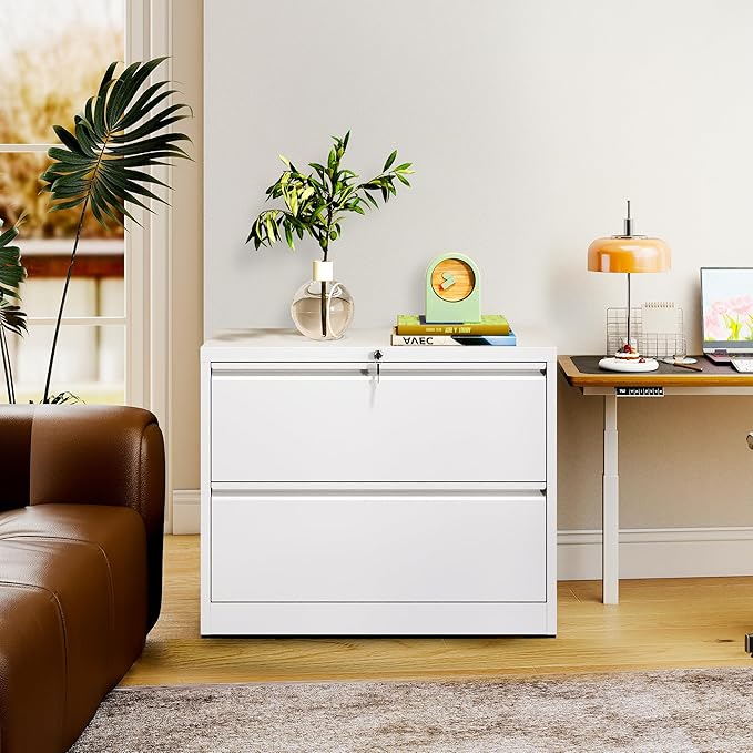 2-Drawer Lateral File Cabinet with Lock, Black Metal Filing Cabinet for Office or Home – Secure Storage for Letter/Legal/A4/F4 Documents, Easy to Assemble Locking File Organizer (White, 2 Drawer-26"W)
