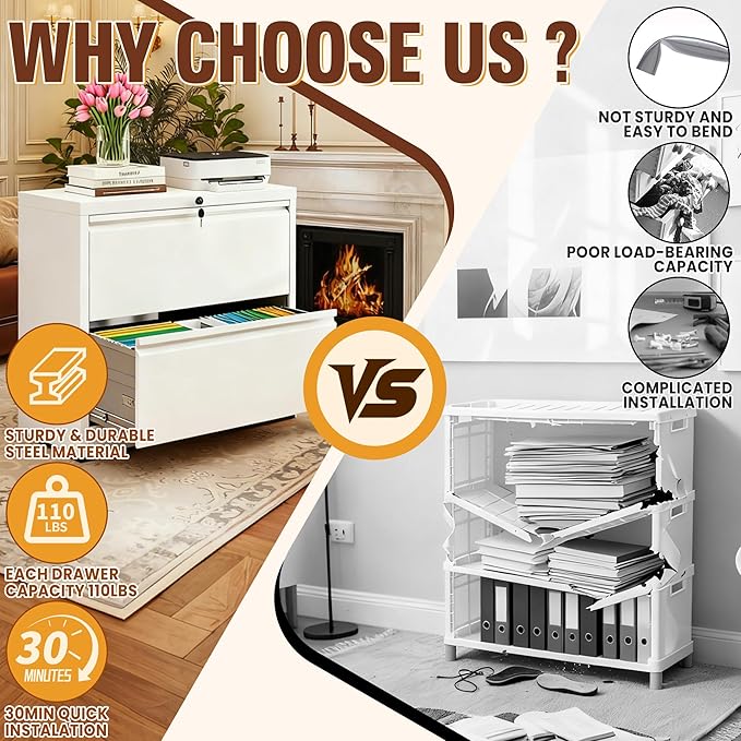 - 【Premium Steel Construction】Crafted from heavy-duty cold-rolled steel, this file cabinet boasts exceptional strength and durability to withstand daily use without bending or warping. The advanced powder-coated finish provides superior corrosion resistance, ensuring reliable performance in any office or home environment for years to come.