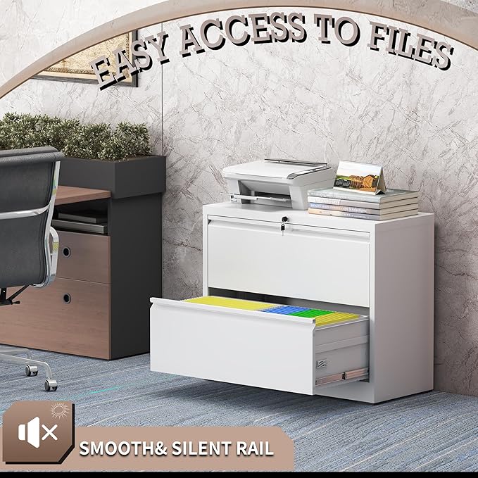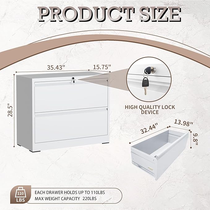 - 【Premium Steel Material】The 2 drawer lateral file cabinet constructed from sturdy cold-rolled steel and with a powder coating process. This filing cabinet offers perfect strength and durability. It reliably protects your important files from damage and is built to withstand daily use for several years to come.