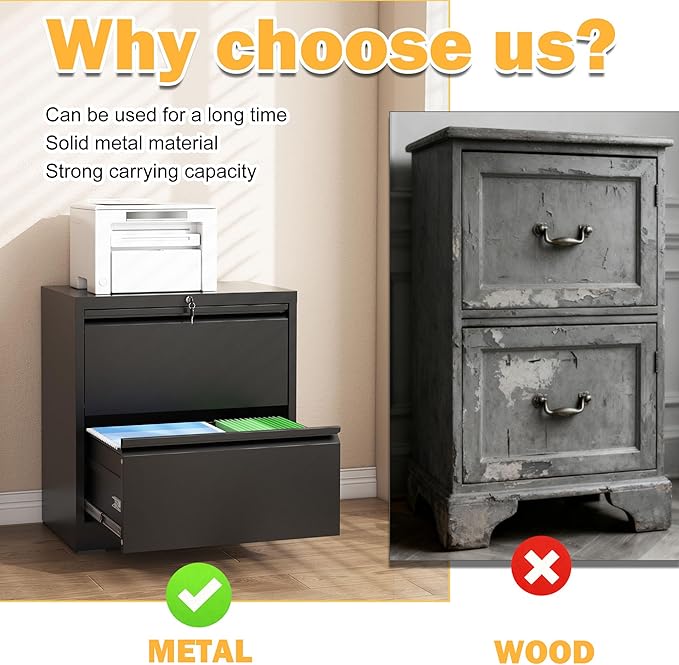 - 【Premium Steel Material】The 2 drawer lateral file cabinet constructed from sturdy cold-rolled steel and with a powder coating process. This filing cabinet offers perfect strength and durability. It reliably protects your important files from damage and is built to withstand daily use for several years to come.