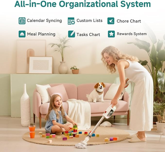 - Free Core Features: Enjoy schedule management, task lists, meal planning, rewards, photo display, and sync—all completely free. Additional tools like weather, brightness control, and sleep mode make daily use seamless
