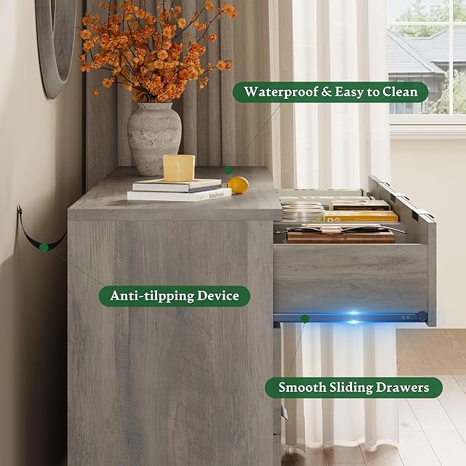 - 【Versatile Wood Dresser】Except for being a wooden dresser in your bedroom or as a console table in your living room, this storage cabinet also can be used as a nightstand or side table. This long dresser could easily fit in various spaces such as the living room, bedroom, hallway, entryway and closet. Its multifunctional design can be perfectly integrated into any room in your house