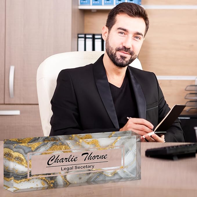- Made & Shipped in the USA: Crafted with premium local materials and advanced printing technology, this desk name plate is produced and shipped right here in the USA. More than just a clear desk identifier, it is a decorative piece that blends functionality with aesthetics, adding a modern and professional touch to any office or home environment. Choose this nameplate to convey thoughtfulness and sincerity in a dignified and distinctive way.