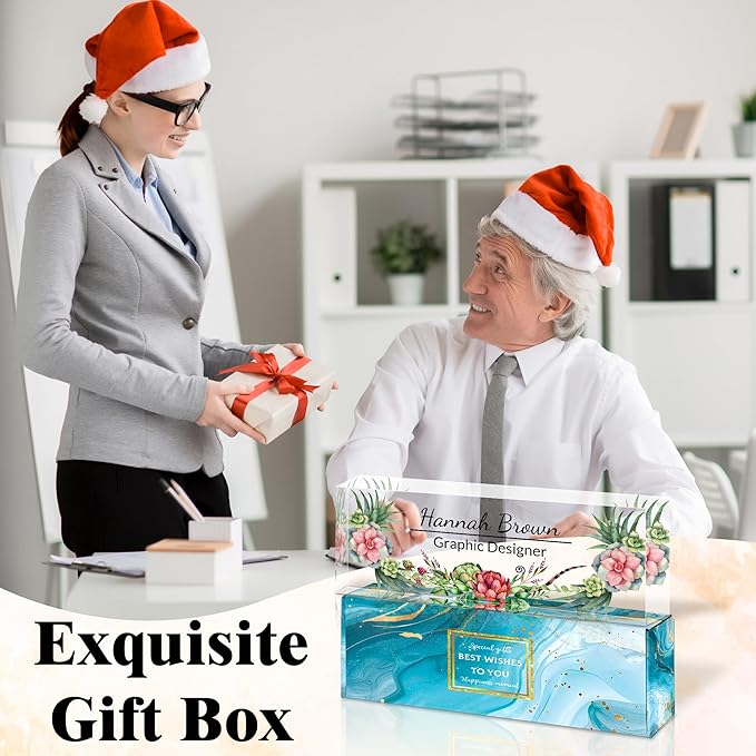 - The Perfect Office Gift: Whether expressing gratitude to colleagues, honoring mentors, motivating team members, or rewarding partners, this gift seamlessly blends sincere sentiment with refined taste. The printed name and title appear exquisitely against the crystalline acrylic material, making your gift stand out among countless options and become a cherished, unique keepsake.