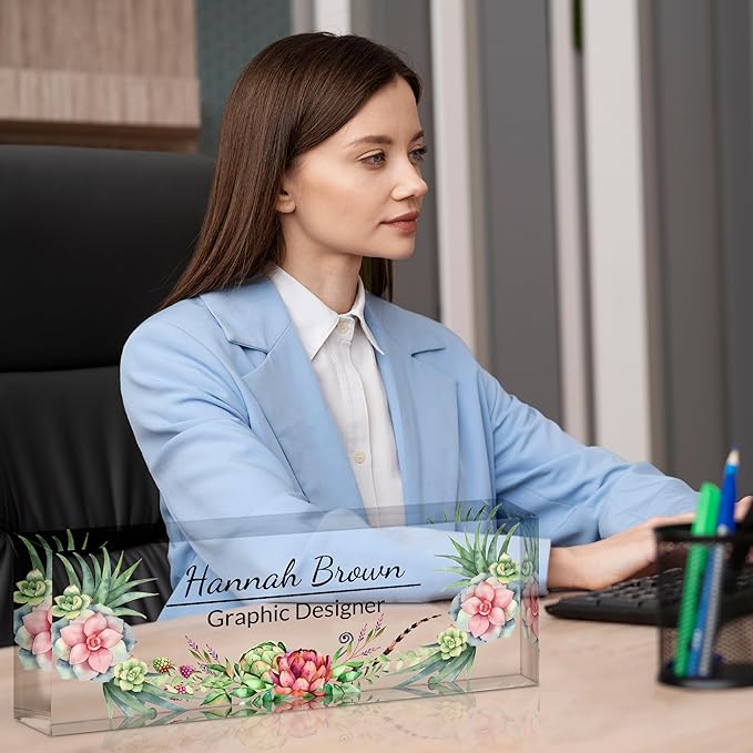 - Made & Shipped in the USA: Crafted with premium local materials and advanced printing technology, this desk name plate is produced and shipped right here in the USA. More than just a clear desk identifier, it is a decorative piece that blends functionality with aesthetics, adding a modern and professional touch to any office or home environment. Choose this nameplate to convey thoughtfulness and sincerity in a dignified and distinctive way.