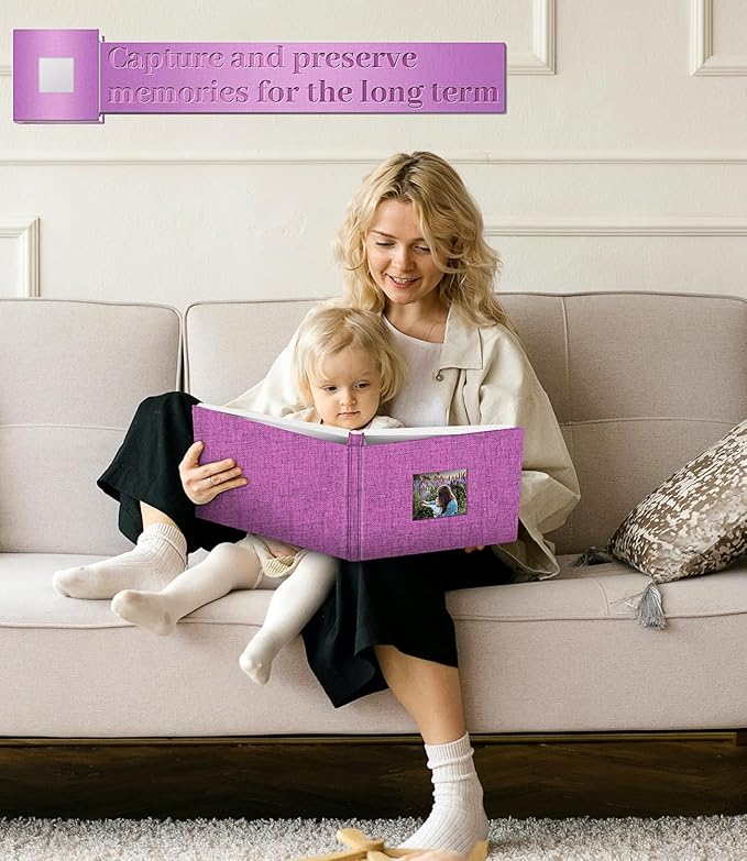 Photo Album Self Adhesive Scrapbook Album for 3x5 4x6 5x7 8x10 Pictures,120 Pages Linen Cover with Display Window DIY Photo Book,Ideal Gifts for Family Travel Wedding Baby