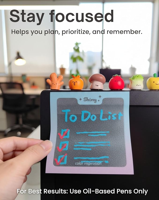 - 【Strong Adhesion & Residue-Free】 These transparent sticky notes use premium adhesive that sticks firmly to paper, glass, or plastic surfaces. They can be repositioned anytime without tearing or residue, keeping your glitter sticky notes clean and reusable.