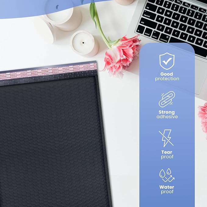 - Self-Seal Feature: Equipped with a strong self-seal adhesive strip to ensure secure closure, eliminating the need for additional tape and making the packaging process quicker and more efficient
