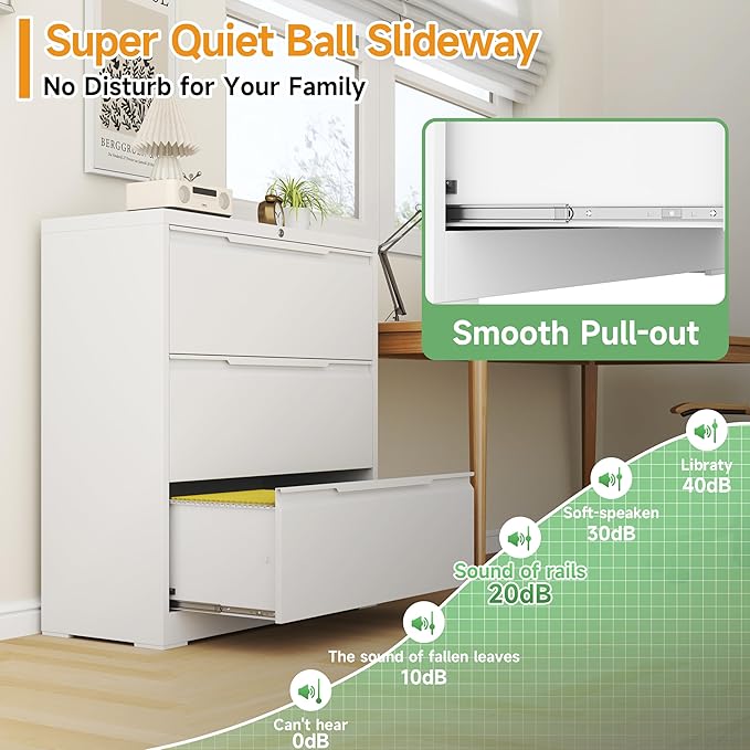 - 【Quiet & Smooth Slide Rails】 No more struggling to open jammed drawers or stuck files with each drawer equipped with precision ball-bearing glides for easy opening, closing, and everyday use.Low noise levels allow you to work from home without worrying about disturbing your family's rest.