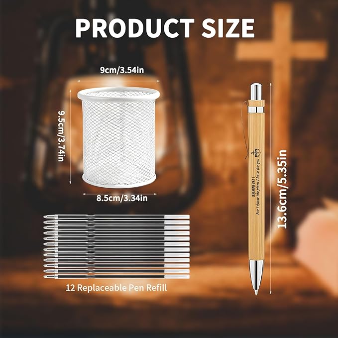 - Vebermo Bible Verse Bamboo Pens (12 Pens + 12 Replacement Black Ink Refills + 1 Pen Holder), perfect for sharing inspiration at church gatherings, Bible study groups, or as meaningful gifts.