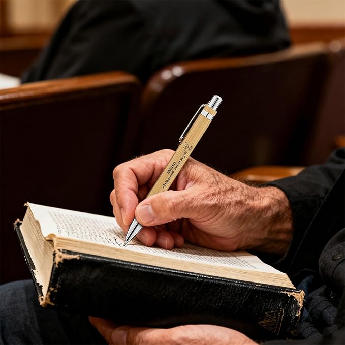 - Premium Bamboo Craftsmanship: Each bible pen is crafted from natural, sustainable bamboo, offering a comfortable grip and an elegant, rustic look.