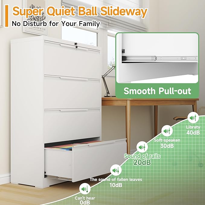 - 【Quiet & Smooth Slide Rails】 No more struggling to open jammed drawers or stuck files with each drawer equipped with precision ball-bearing glides for easy opening, closing, and everyday use.Low noise levels allow you to work from home without worrying about disturbing your family's rest.
