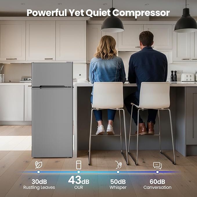Kismile 4.5 Cu.Ft Mini Fridge with Freezer, Compact Mini Refrigerator with Adjustable Removable Glass Shelves,Small Fridge with 2 Doors for Home,Kitchen,Dorm,Apartmen,Grey