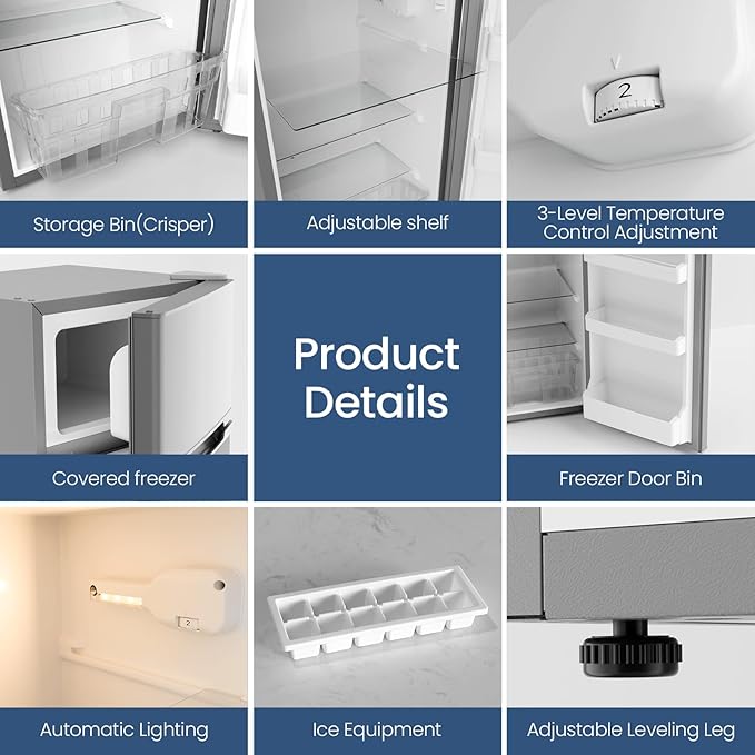 - Fashion and Durability:This dorm fridge adopts a traditional minimalist style and is made of 58.6% steel, which makes it less likely to deform during transportation. 16% of its material is foam insulation, which can maintain a low temperature for several hours after a power outage. It is suitable for home and bedroom use. This retro mini refrigerator requires manual defrosting