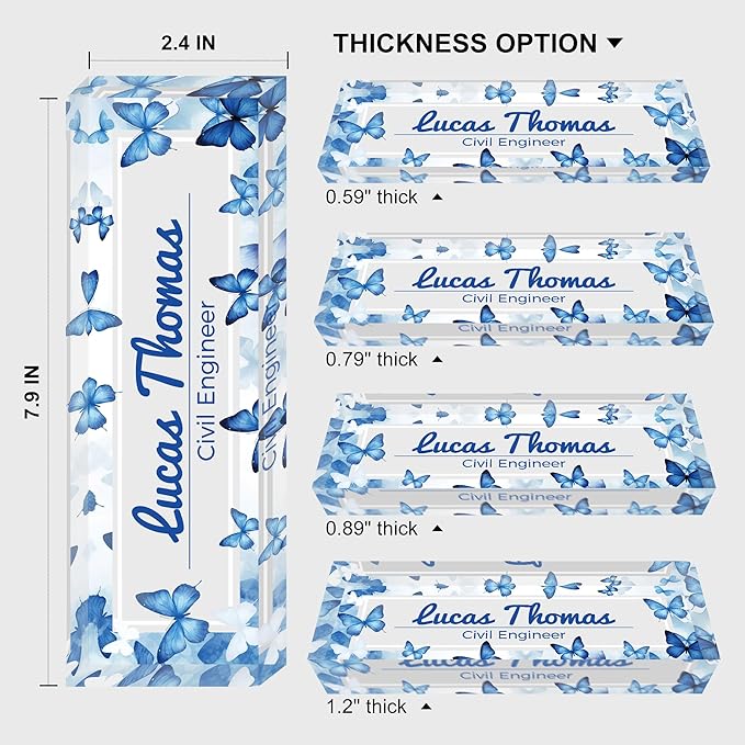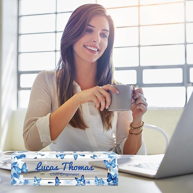 Custom Name Plate for Desk, Personalized Acrylic Office Name Sign with Name & Title, Elegant Desk Decor for Women Men, Employee Appreciation Gift (Blue Butterfly)