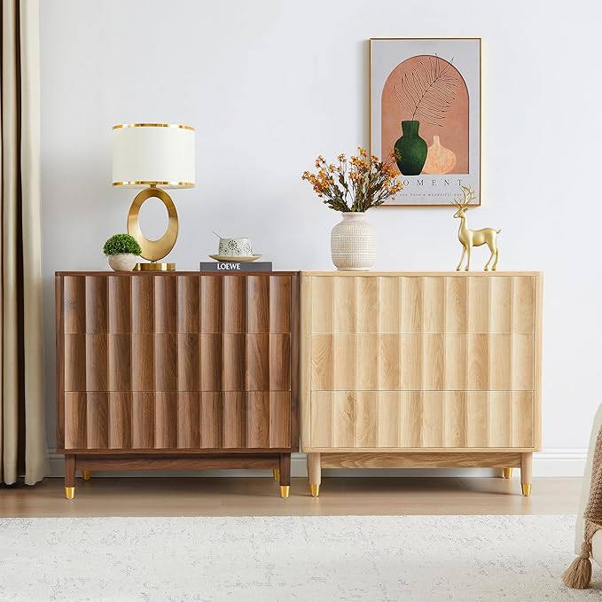 - Mid-Century Modern Design:This elegant 3 drawer dresser in mid-century modern style is adorned with exquisite grooved paneling, fully embodying an enduring style! It combines medieval design elements with rich walnut or natural wood tones, adding a classic retro charm to your bedroom and living room