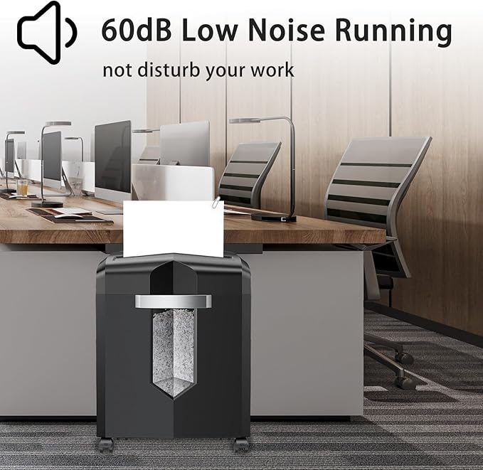 - 【Professional P-4 Security】Shreds documents into ultra-small 13/64″ x 15/32″ (5×12 mm) pieces for P-4 level confidentiality. The 60 dB low-noise design maintains a quiet environment, ideal for corporate offices, small teams, and home professionals.