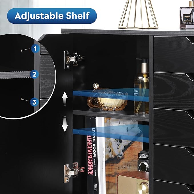 - MULTIFUNCTIONAL & STYLISH: This file cabinet with storage spaces, 5 drawers storage cabinet can perfectly match with any color schemes and tones, simple design and practicality is perfect for home office, study room, living room.