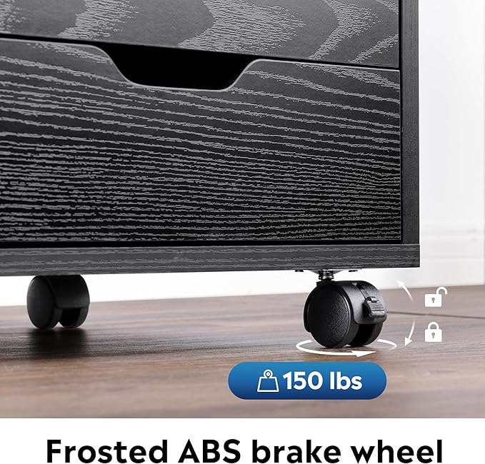 DEVAISE Mobile File Cabinet, 5-Drawer Wood Dresser Chest with Door, Printer Stand for Home Office, Black