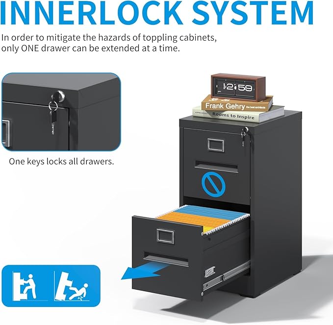 - 【Stable Anti-Tip Design】Engineered for safety, this file cabinet with lock features a robust anti-tip mechanism that prevents drawers from being opened simultaneously, ensuring stability even when fully loaded. Smooth, quiet gliding rails allow for noiseless and effortless operation.